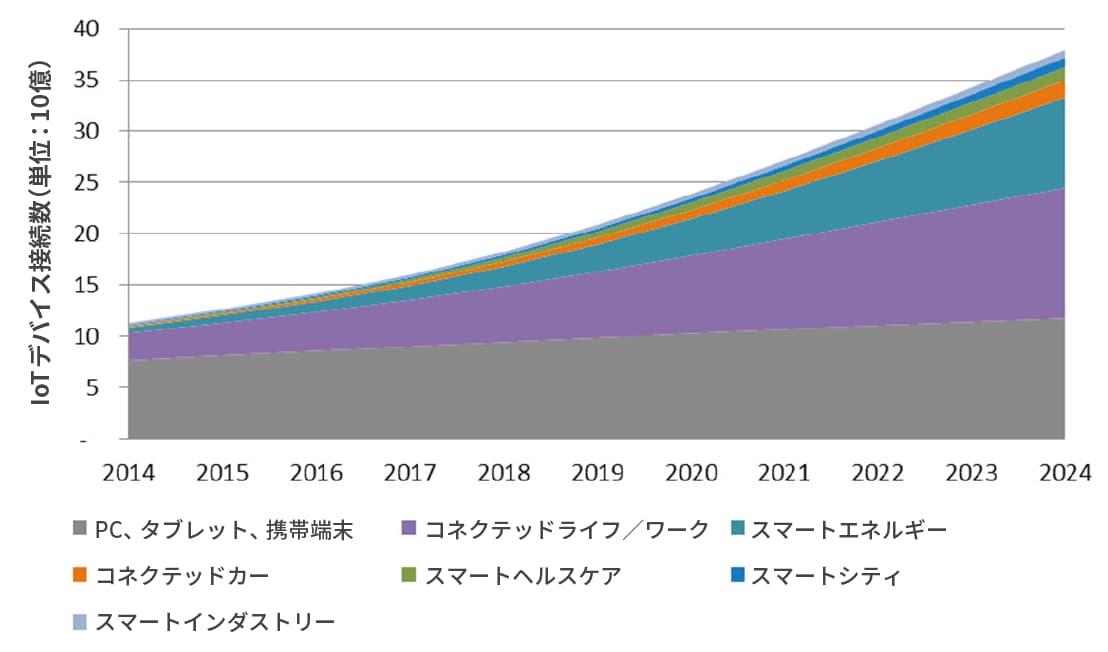 図1. デバイスタイプ別 IoT デバイス接続数の増加推移 参照元:http://enterprise-iot.org