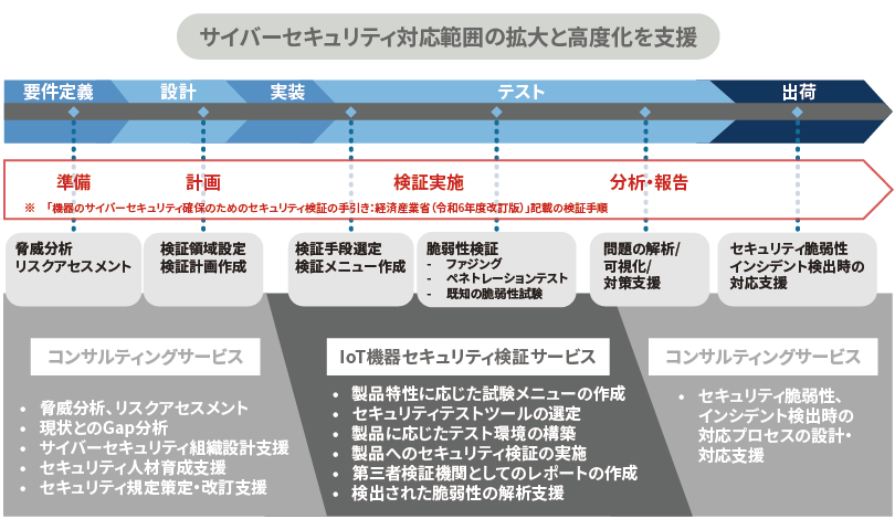 両社は、法令・規格・ガイドラインへの準拠から製品脆弱性の検証までサイバーセキュリティ対応をトータルで支援するサービスを開始します。